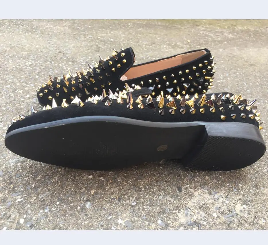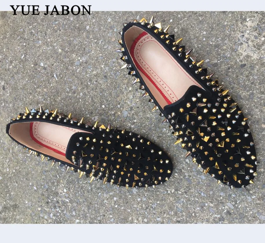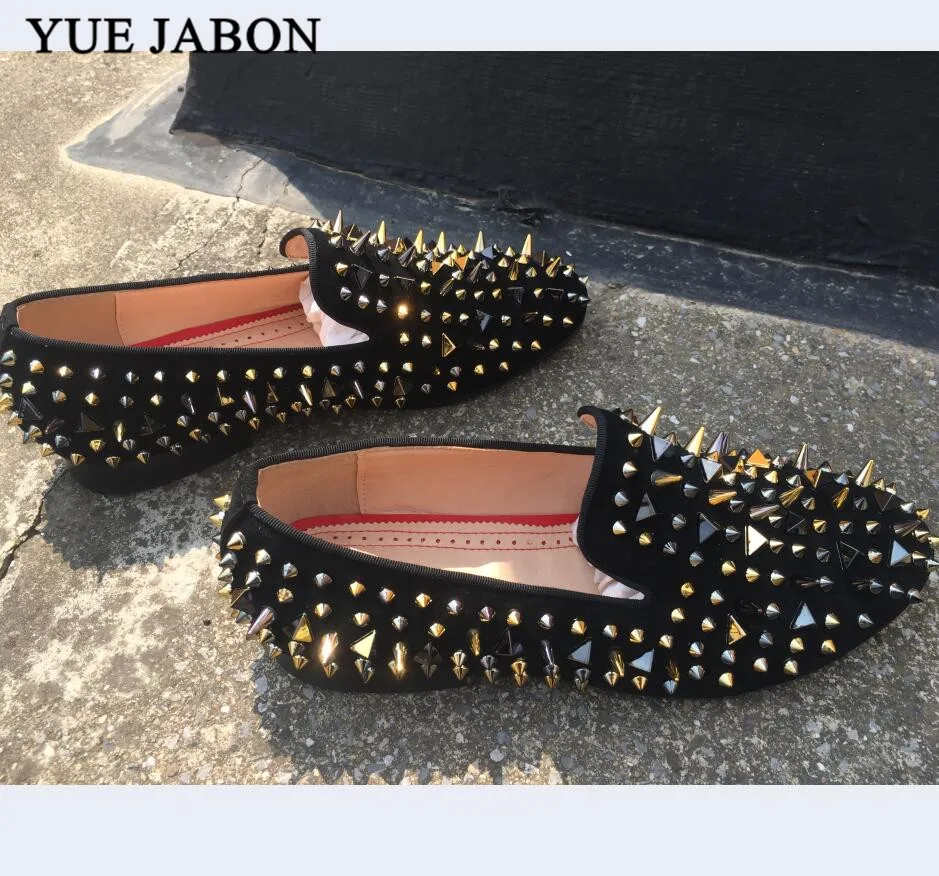 Black Handmade Men Rivets Shoes Fashion Party Prom Men Loafers Plus size leather casual shoes Rivet